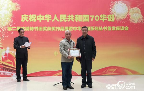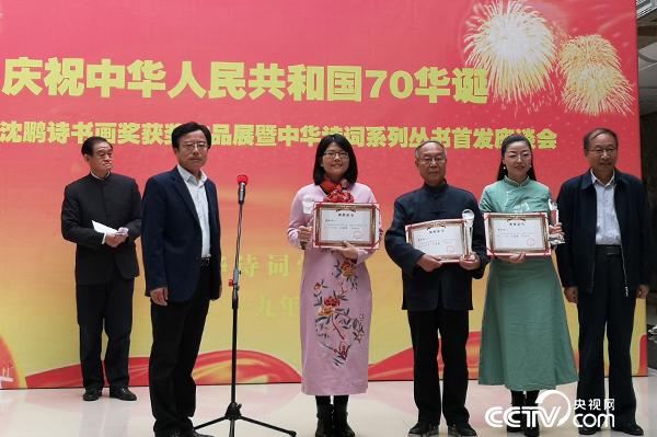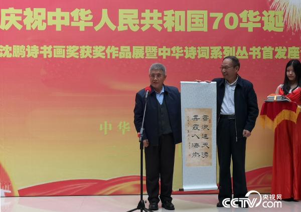 为庆祝中华人民共和国成立70周年,展示中华诗词的发展成就,10月15日上午,由中华诗词学会主办的第二届沈鹏诗书画奖作品展暨中华诗词纪念丛书首发式在北京中国现代文学馆举行。