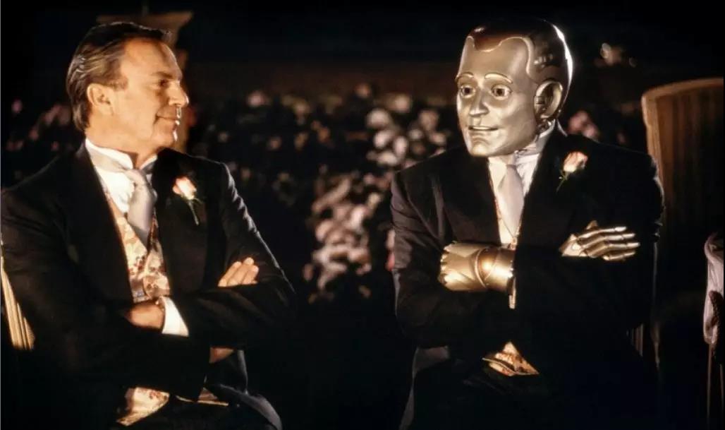 借由安德罗、大卫或其他机器人的故事,我们能够得见机器人伦理身份转变的逻辑:他们被制造出来是服务人类的,这是他们与生俱来的、被人类赋予的“身份”,是他们作为人类的客体被强加的。然而,他们并不安于这种既定的身份,对于机器的统一性身份产生了排斥,从而产生了对于人类属性,尤其是情感属性的“认同”。这种认同是自我反思与定义的结果,显示了他们作为一种主体对于人类身份特征的追求。人类的情感特质,无论是爱情还是亲情,都是属于人类的伦理关系和情感方式,在机器人的伦理世界中是没有的。因此,对于情感的追求,对于人类伦理的认同,彰显了机器人的主体性。