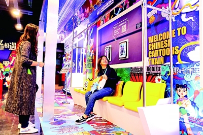10月17日,由上海美术电影制片厂、百度和豫园共同打造的“童年英雄AI幻想”互动展在上海豫园华宝楼举行媒体预展,并将于10月18日正式开放,展出时间1个月。齐天大圣、黑猫警长、葫芦娃兄弟、哪吒等深藏于几代人童年记忆中的经典动画形象,在人脸识别、语音识别、动态捕捉等AI技术的“加持”之下,带领参观者重温童年记忆、参与丰富多彩的互动体验,展开“童年英雄AI幻想”之旅。图为预展参观者在“童年英雄的AI幻想”互动展上体验用动画形象的表情包拍大头照。