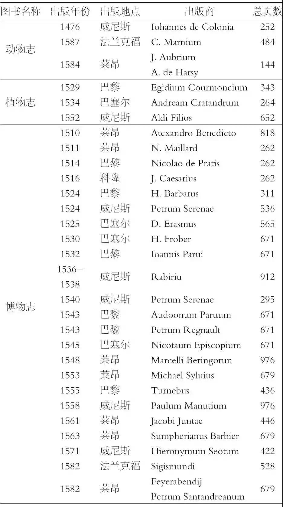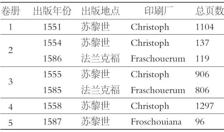 表2 格斯纳多卷本《动物历史》书目出版数据