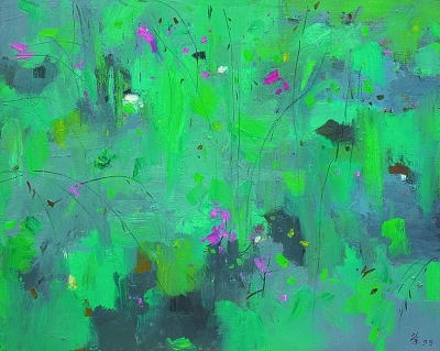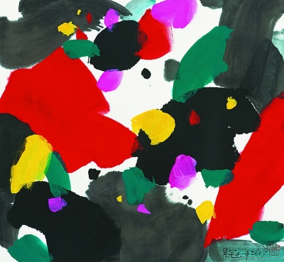 中国的绘画,所画往往不是静止的形状,而是正在成形之中的世界,如洛神赋的飘摇,如曹衣吴带的水风飘忽,如宋元山水的玄远清虚的境界,如梅兰竹菊亦影亦神的意写。它并不虚拟另外一个世界,而是不断地带着我们回溯某个可见的源头,从那里面对晦明之间、有形与无形之间、可见与不可见之间、此刻与恒永之间的万千意象,绘画的意象正隐匿或浮现在这漫无涯际的“之间”的间性之中。艺者的使命就是义无反顾地涉入其中,发力凿开这混沌的一片,让生命的意象悄然显身。吴先生深谙东方艺者的这份特性,真实地站在大地上,沉醉于“祖国之土”的呼吸吐纳,依着他的艰辛而丰饶的人生经历,依着他的超拔的心灵与精神自由,在生命的持续危难中阅读“间性”的气象,铸炼诗的启蒙与超越。吴先生的艺术为“后绘画”时代的世界艺堂提供了某种源于东方又不止于地域性的“间性”的典型。这正是吴先生艺术的内涵,正是吴先生自比赵无极先生绝无愧色、而世界也同样选择了吴先生的底气。吴先生秉着这种“间性”的韵息和敏锐,建构起他的诗性的田园。这个田园风筝不断线,始终存留着东方式的直观和意态,以避免样式的模仿与空泛。这个田园不承认没有内容的笔墨,以放骸的挥洒引领时代新风。这个田园将人生的苦情与艺术的苦心煮在一起,熬成一份有些苦味、却沁人心脾的画卷。
