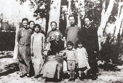 前排左起:陈三立、俞方济、陈小彭;后排左起陈新午、喻徽、陈小从、黄国巽、陈隆恪、陈寅恪