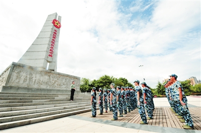 崇尚英雄才会产生英雄,争做英雄才能英雄辈出。图为江西省赣州市于都县高中生在中央红军长征出发纪念碑前聆听革命故事,接受红色教育。潘庆坤摄/光明图片