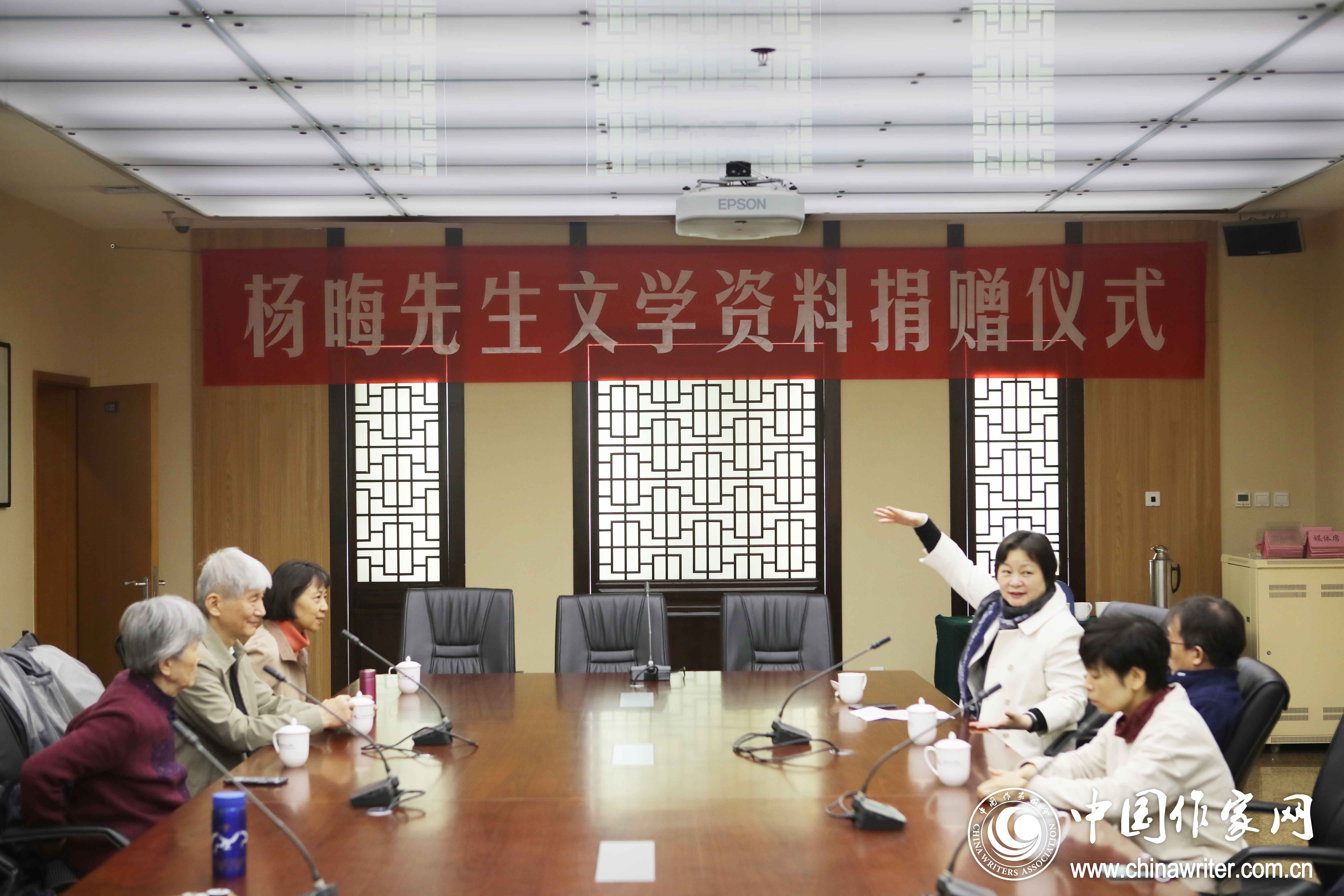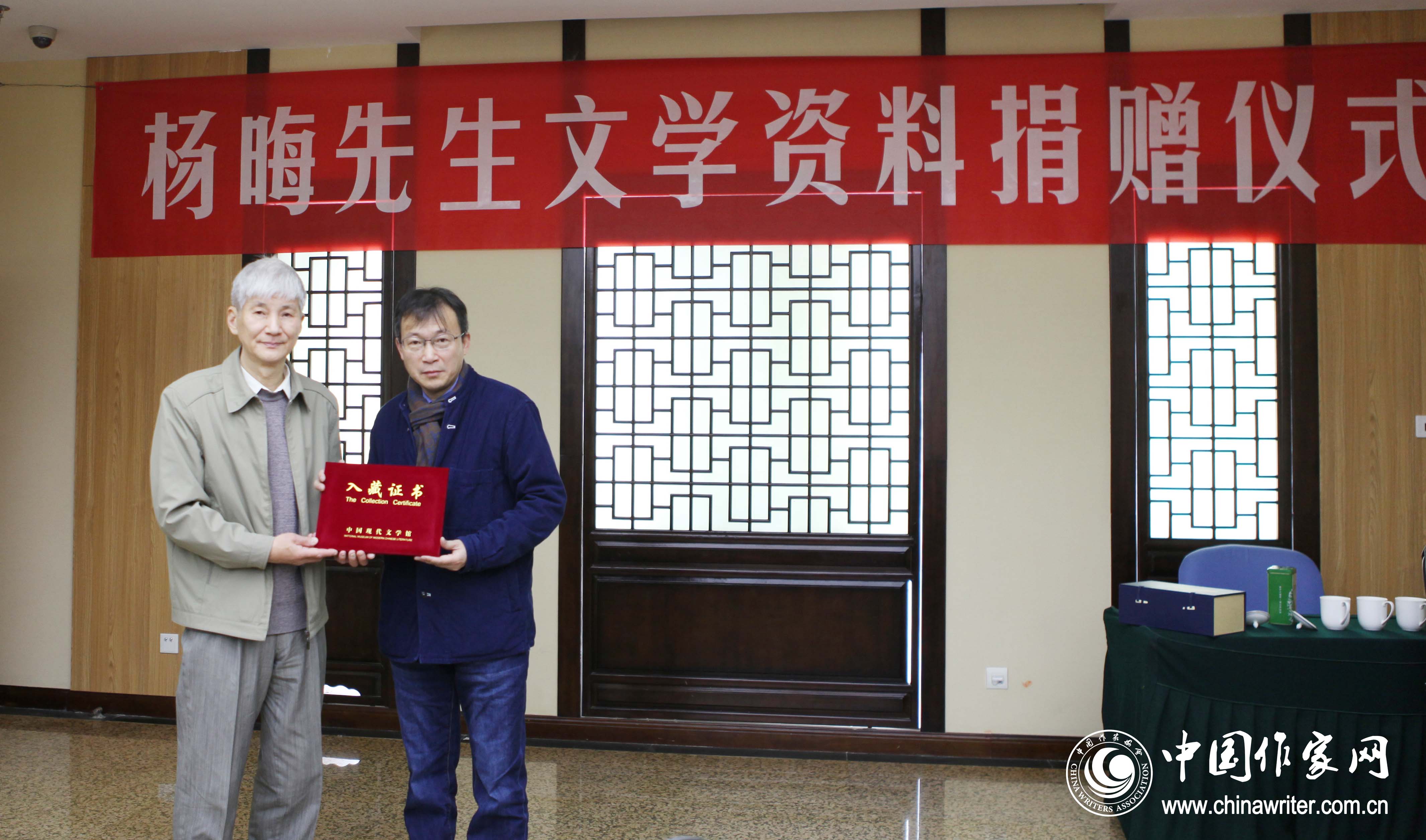 中国现代文学馆副馆长李荣飞为杨晦先生子女颁发入藏证书