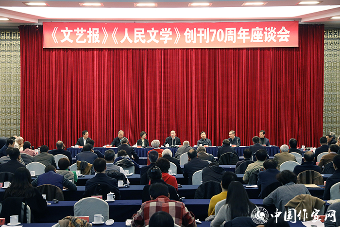 “刚刚过去的十月,全党全国各族人民隆重庆祝了新中国成立70周年。10月31日,党的十九届四中全会胜利闭幕,为坚持和完善中国特色社会主义制度、推进国家治理体系和治理能力现代化提供了根本遵循。今天,我们欢聚一堂,举行《文艺报》《人民文学》创刊70周年座谈会,旨在深入学习贯彻习近平新时代中国特色社会主义思想和习近平总书记关于文艺工作的重要论述,重温《文艺报》《人民文学》在党的坚强领导下走过的70年峥嵘岁月,总结《文艺报》《人民文学》推动文学创作和理论批评的成功经验,进一步团结引领广大作家、评论家和文学工作者更加紧密团结在以习近平同志为核心的党中央周围,不忘初心、牢记使命,勇于担当、守正创新,奋力开启文学报刊事业的新篇章,为推动我国社会主义文化事业繁荣发展作出更大贡献!”铁凝的一席话,让在场的作家、编辑、文艺工作者深感使命重大,职责神圣。