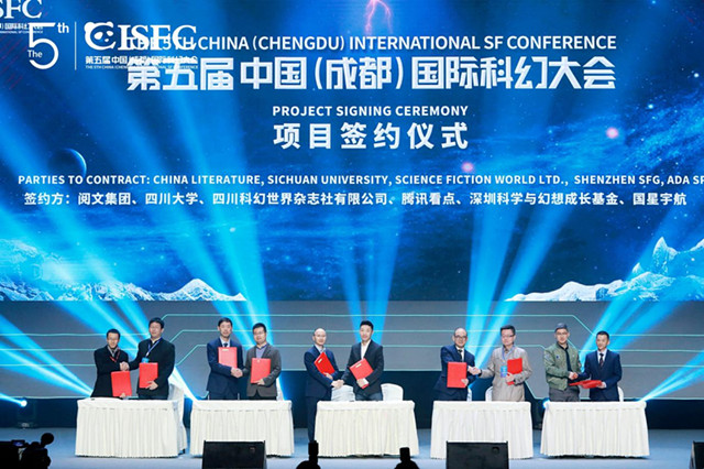 11月22日,以“多元幻想,多彩未来”为主题的第五届中国(成都)国际科幻大会在成都召开。本次科幻盛宴为期三天,包括“2019科幻高峰会议暨亚洲科幻会议”、“银河之夜”颁奖盛典、科幻主题系列巡展及40余场行业高峰论坛谈,全面展示了以科幻文学为源头的中国科幻产业发展现状及未来趋势。与往届会议相比,本届大会更注重科幻事业的“国际化”、“产业化”发展,邀请了来自14个国家的近60位国际嘉宾、300余位中国知名科幻作家、相关学者及产业精英共同出席。阅文集团作为此次大会的重要合作伙伴,在科幻文学培育、出版、IP运营开发等方面与会议主办方达成深度战略合作,同时旗下作家连续三年摘得科幻最高奖“银河奖”桂冠,依托平台力量进一步推动以文学为代表的科幻作品向精品化、主流化不断迈进。