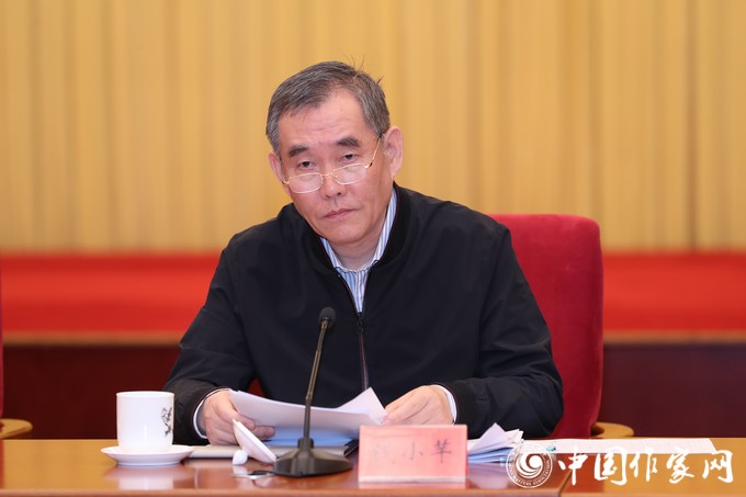 中国社科院副院长蔡昉为参会代表作报告,中国作协副主席阎晶明主持报告会
