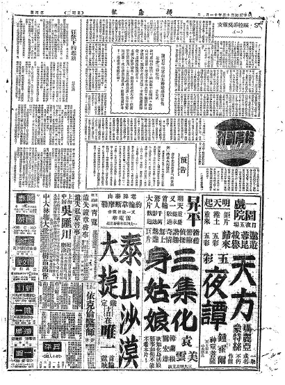《扫荡报》1944年11月8日第四版发表的《预告》