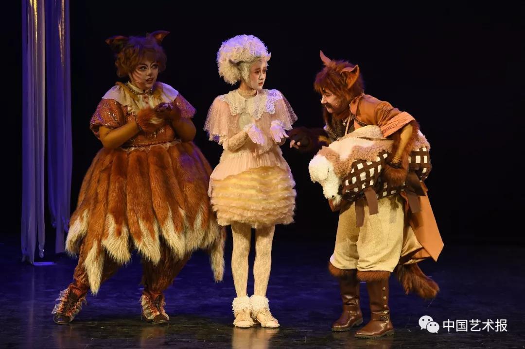 原著本身的厚重感不免会让这个剧带上沉重的色彩,这与少儿观众喜欢热闹、活泼产生了矛盾,但该剧将人物转化为动物的同时,还巧妙地运用动物形象和动作的特点让演出充满着诙谐和幽默。剧中主教的管家玛格鲁瓦尔太太是一只鸭子的形象,她的一惊一乍和小市民的气质,被演员戴晔用鸭子摇摆的行动姿态、呱噪的语言来塑造,形成了这个人物特有的趣味性,符合了儿童观众的喜好。德纳第夫妇狐狸一家被演员们用夸张放大的表演手法,赋予了人物喜剧的色彩,总是让人忍俊不禁。