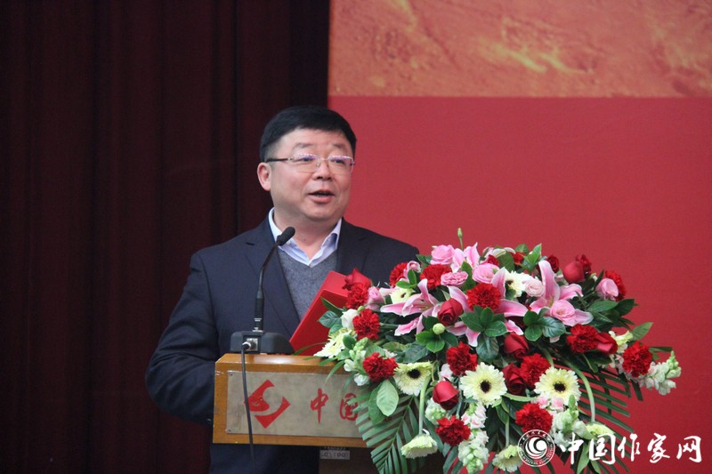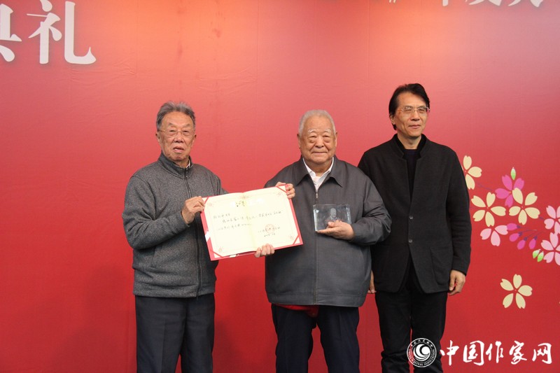 中国作协副主席何建明宣读本届荣誉奖的作家名单