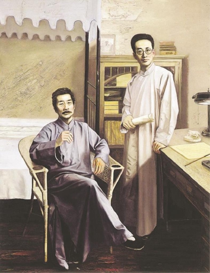 画家石良作品《友谊(鲁迅与瞿秋白)》