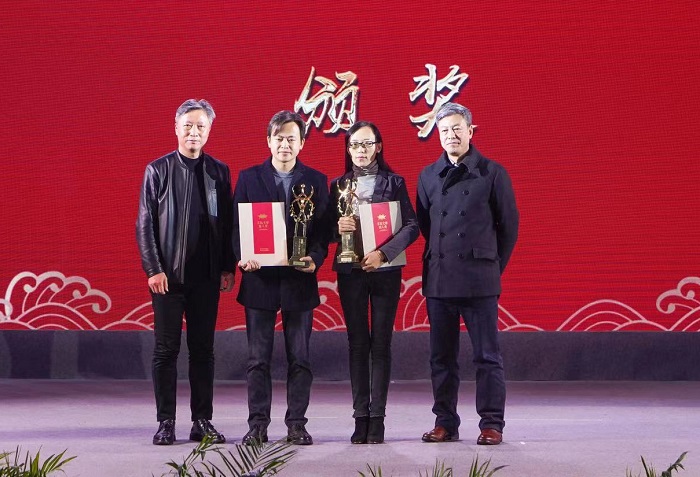 程绍武、徐剑东为获奖者文珍、叶炜颁奖 李菁/摄