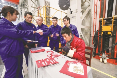 除了文艺演出,活动现场,非遗传承人李雄刚为现场观众送上亲手剪的福字,表达一份特别的新春祝福。“这是外面买不到的独一份,过年回家可以带给父母。”拿到福字的机车检修工们开心地说。