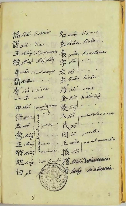 被伯希和称为《中国短篇小说》的这件现藏于梵蒂冈宗座图书馆的文献,是万济国为帮助意大利籍的传教士学习汉语而编写的识字材料。他以《玉娇梨》作为底本,对汉字单字和少量语词注音并作解释。此件绝非《玉娇梨》的意大利语译本,常老师将此件称作“中国小说西译之嚆矢”,我认为这一论断因缺乏事实支持而不能成立。