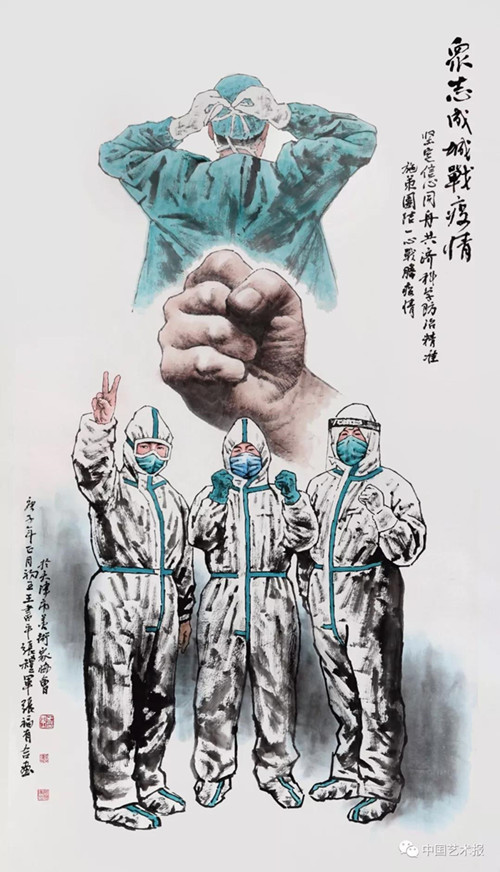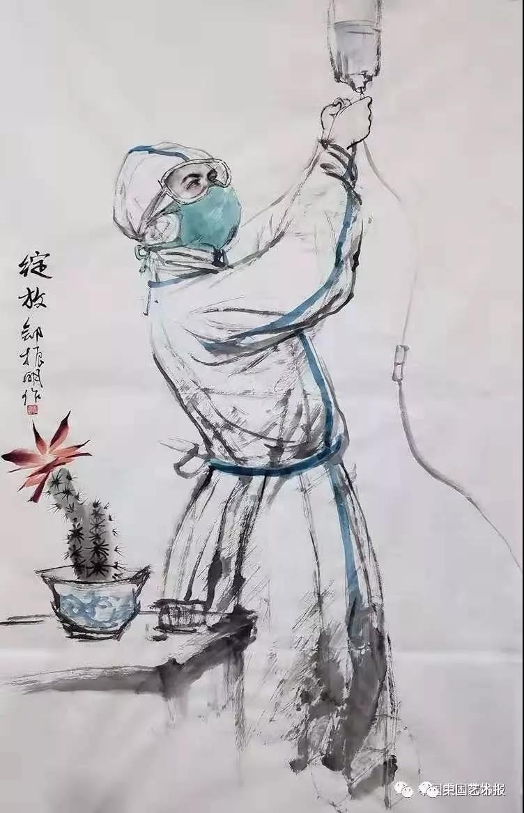 这是美术家心系战“疫”一线的一个缩影。广大美术家拿起手中的画笔,一大批以抗击疫情为主题的美术作品涌现出来,凝聚起抗击疫情的强大精神力量。本网选发部分画作,致敬新时代的英雄,赞美大爱精神。
