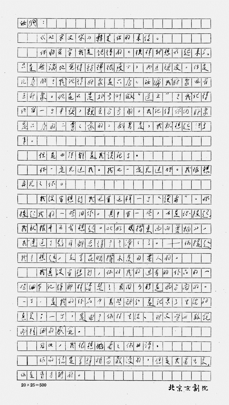 你的短篇集子和信都收到好些日子了。你的那些小说除选自《邂逅集》的几篇外,过去我都是从刊物上零星地读的。这回又集中起来重温一过,所以拖到现在才给你写信。