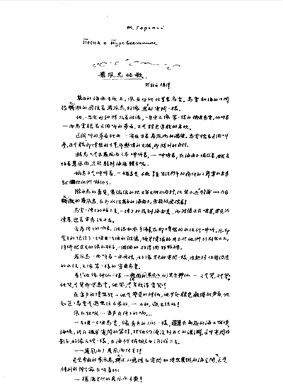 世上确有意想不到的事。“文革”结束后,我竟有机会接触到瞿秋白同志在旅居苏联期间翻译《海燕》(最初译为《暴风鸟的歌》)留下的手迹,从而了解到他翻译《海燕》的情况,不是像我原来想象的那样一蹴而就,而是经过了反复推敲。