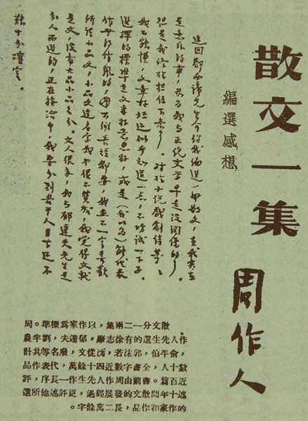 《中国新文学大系导论集》初刊于1940年10月,按赵家璧上述的说法,此时良友复兴图书公司的编辑部乃由他负责。至于将十卷本的《大系》改造成精粹简便的《导论集》,是不是他本人操刀,不得而知。不过,赵先生对这册《导论集》起码并不反感,在《话说 <中国新文学大系> 》中四次引述[11]。 中国新文学大系>