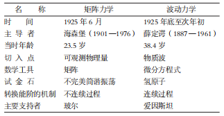 不过,并非每一场物理革命都适合画成图解,所以我有时会用表格来呈现。比方说,讲到量子物理的发展史,很多人都知道在1925年出现了重大突破,催生出量子力学这门学问。严格来说,这个重大突破是由两场革命组成的,但由于两者时间很近,容易让人混淆,所以我决定用表格做些详细的对照。例如,海森堡和薛定谔是量子力学的创始人,通常我们总会觉得两人是同辈,但只要查一下年龄,你就会发现他们至少差了半个辈分。而且他俩的切入点非常不一样,使用的数学工具也是南辕北辙。更有趣的是两人背后各有一位大神级的支持者,分别是玻尔和爱因斯坦。