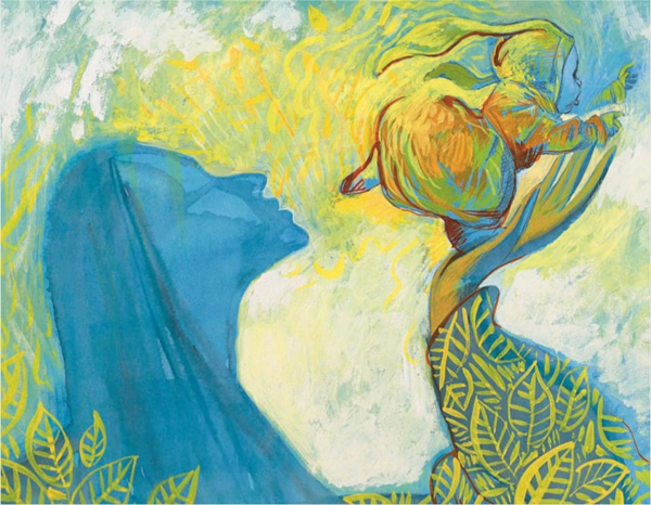 澎湃新闻:《妈妈身上有个树林》是您跟梅子涵老师的第二次合作了,这是一个诗歌文本,对您来说,诗歌文本的绘本化是不是比故事文本更有挑战性?您之前谈到这本书的创作,提出了一个“具体画面+抽象内容=诗意体验”的说法,能具体解释一下吗?