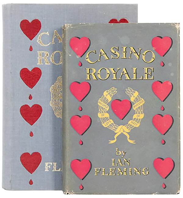 小说《皇家赌场》次年便在大西洋彼岸的美国出版。总部在纽约的麦克米伦出版公司(Macmillan Publishers)同样在书封上采用了“红桃9”元素。今次作为“2号拍品”,美国第一版《皇家赌场》估价为600–800美元。而另一本007小说《来自俄罗斯的爱情》(From Russia With Love)同为美国版,且只是平装本却因为带有作者题词和签名而“纸贵”,估价2,000-2,500美元。扉页上,弗莱明写到“献给行动派(To a man of action)”,并签下自己的大名。这场拍卖会既然在美国举行,自然要强调007小说出版在地性的一面。“4号拍品”为从1954到1966年(作者卒年)一套14本007系列丛书(12本小说,两部短篇小说集)的第一版全集。 由于存在不同程度的磨损和涂污,这套美国版大全集目前估价为1,500-2,000美元。