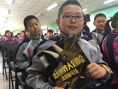 《大开眼界 恐龙世界大冒险》的作者孙屹在为小读者展示图书