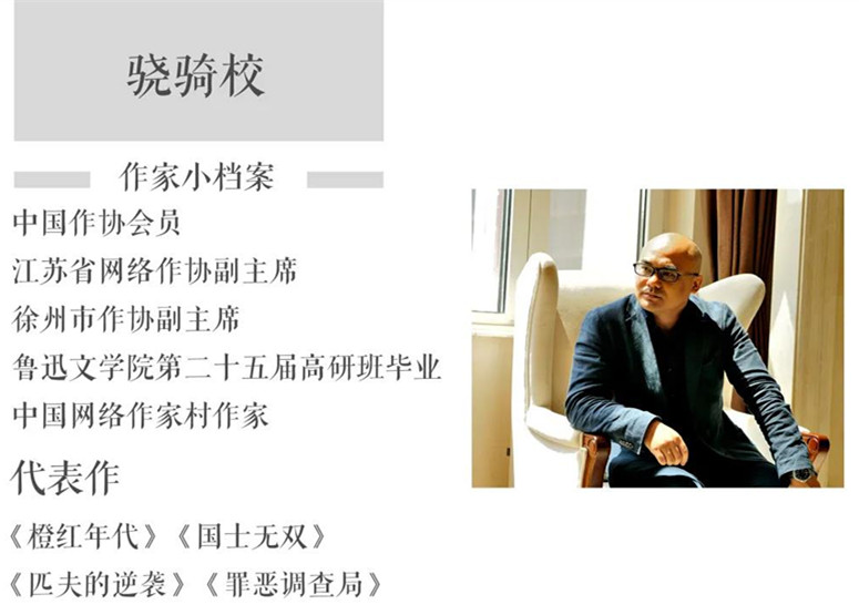 2007年,骁骑校正式步入网文圈,这一写,就是13年。“我开始写网文的时候已经三十岁了,在此之前,尝试过诸如电器工程师等众多职业,最后还是发现最喜欢写小说。”