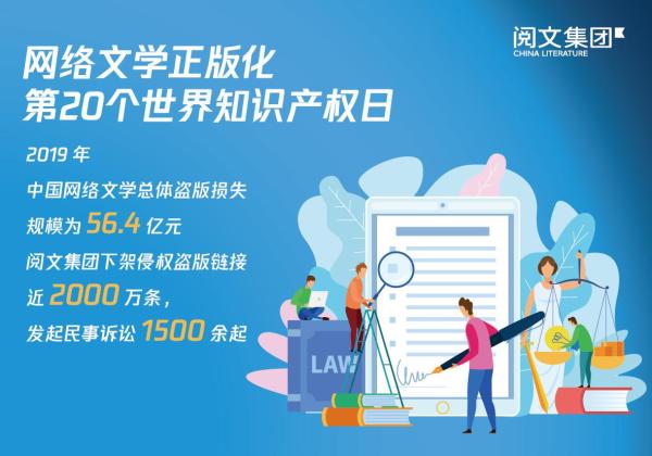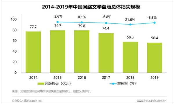 阅文集团的相关研究报告显示,2019年中国网络文学总体盗版损失规模为56.4亿元
