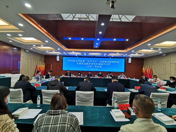 4月27日上午,四川省文学扶贫“万千百十”活动重点扶持作品九寨沟县脱贫攻坚长篇报告文学《心安》发布会在九寨沟县举行。