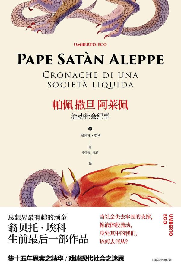 说到“老调”,艾柯真是活到老、观察与思考到老,文章也写到老,很令人佩服。越到晚年,艾柯对现实的看法就越悲观,这从他的几本文集中就可以看出来。在《纪事》中他说政治家和绝大多数知识分子都没弄清“流动的社会”的现象及其威力,鲍曼要人们正视危机的呼吁仍然只是“旷野里的呐喊”。从这部文集的书名“帕佩撒旦阿莱佩”也可以看出某种悲观与无奈,艾柯在“前言”解释说这个题目出自但丁《神曲·地狱篇》第七歌,出自冥神普鲁托之口,没有确切的含义,却令人联想起各种稀奇古怪的事物。与副标题“流动社会纪事”相配合,在一个流动的、失去任何坚固东西作为支撑的社会中,一切都是那样的稀奇古怪,也就是我们说的妖孽丛生。