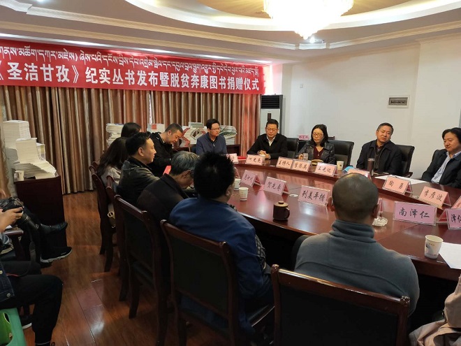 据悉,2017年以来,围绕文学扶贫“万千百十”工程,州委“脱贫攻坚”战略部署,甘孜州委宣传部、州脱贫攻坚办、州文联、甘孜日报社共同策划开展了“脱贫奔康 文艺同行”活动,组织州内知名作家深入脱贫攻坚一线调研采风,创作报告文学集和“圣洁甘孜”纪实丛书,全景展现甘孜州深度贫困地区推进电力扶贫、发展乡村产业、包虫病综合防治等方面脱贫奔康的伟大壮举;创作纪实文学,展现改革开放40年来甘孜州经济社会发展取得的伟大成就,推介甘孜全域旅游,助推文旅融合发展。