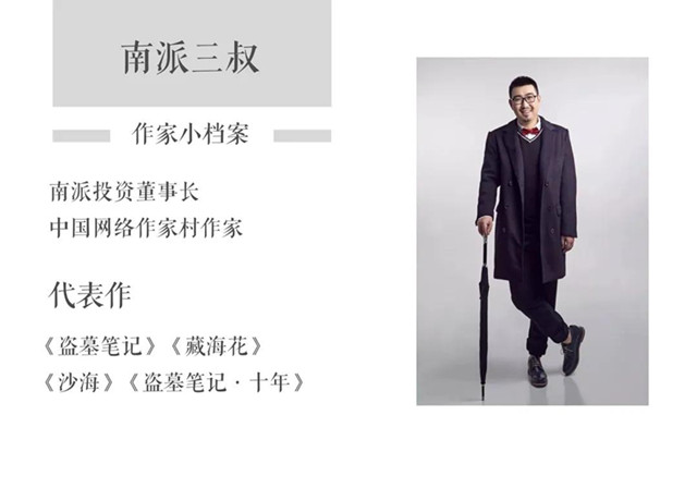 时至今日,原本兼职写作的那位外贸公司小职员已经变成了集作家、编剧、监制和公司董事于一身的南派三叔,而《盗墓笔记》,也成了与他身份密不可分的的一个符号。