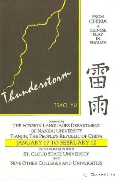 南开外文剧社赴美演出《雷雨》的演出海报