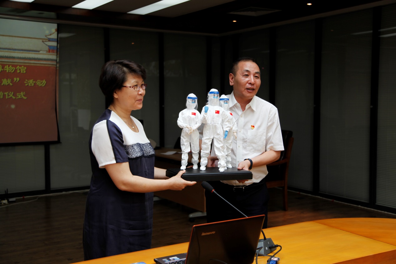 捐赠仪式上,肖维平介绍,“非凡抗疫,北京记忆”抗击新冠肺炎文献征集活动是首都图书馆为守护全民抗疫的时代记忆,做好特殊时期的记忆保存,传递抗疫正能量,充分履行图书馆“收集、整理和保存承载中华民族精神和时代记忆文献资料”职责使命的重要举措。自今年2月27日面向全市开展征集,已相继收到热心读者捐赠的音视频、图片、文字、书画作品等各类文献700余件。北京工艺美术博物馆此次向“非凡抗疫,北京记忆”抗击新冠肺炎文献征集活动捐赠的物品包括书画作品、医护人员形象绢人(石荣禄《祈福武汉 天佑中华》书法作品与马燕平《最美逆行者》绢人摆件)、工艺美术相关视频98段、活动倡议书等,均来自“遥祝武汉 匠心奉献”公益活动。