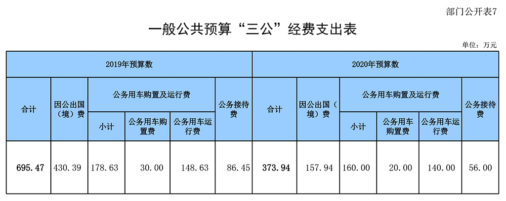 (二十七)“三公”经费:纳入中央财政预决算管理的“三公”经费,是指中央部门用财政拨款安排的因公出国(境)费、公务用车购置及运行费和公务接待费。其中,因公出国(境)费反映单位公务出国(境)的国际旅费、国外城市间交通费、住宿费、伙食费、培训费、公杂费等支出;公务用车购置及运行费反映单位公务用车车辆购置支出(含车辆购置税)、燃料费、维修费、过路过桥费、保险费、安全奖励费用等支出;公务接待费反映单位按规定开支的各类公务接待(含外宾接待)支出。