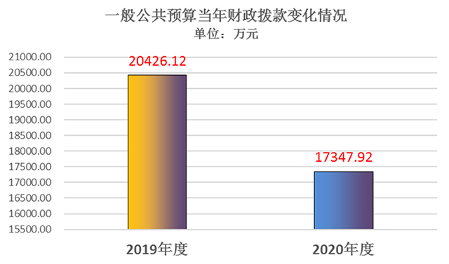 中国作家协会2020年一般公共预算当年拨款17347.92万元, 比2019年执行数减少3078.20万元,主要原因是按照党中央、国务院关于过紧日子的有关要求,厉行节约办一切事业,大力压减一般性支出,重点压减机关公用经费和文学创作与研究、文学出版与传播等项目支出中的非急需、非刚性支出,同时合理保障了必要支出需求,体现在有关支出科目中。