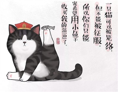 百万级漫画作品《就喜欢你看不惯我又干不掉我的样子》(简称“喜干”)的作者白茶,甚至被称为“社交媒体时代的丰子恺”。主人公吾皇、巴扎黑、少年、牛能是最先走进读者心里的“喜干元素”,在这些“猫猫狗狗”身上,国画元素与现代漫画表达完美融合,所有场景都有种基于国风的“都市范儿”,好像一个小爪子就能挠进你心,颇有“以古鉴今”的调调。书名本身就显示了一种当代人对待世界的态度,用微小而“独一无二”的自我和世界互动。经典语录如“无法改变的,学会去享受”“遇事冷静,脸小三分”“既然彼此彼此,何不放过彼此”,疫情期间,狗狗巴扎黑更是定下了“自己遛自己”的计划,暖心的画面令读者爱不释手。