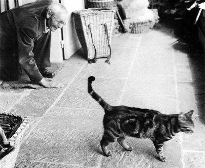 80岁的黑塞和他最后那只公猫波菲在阳台上