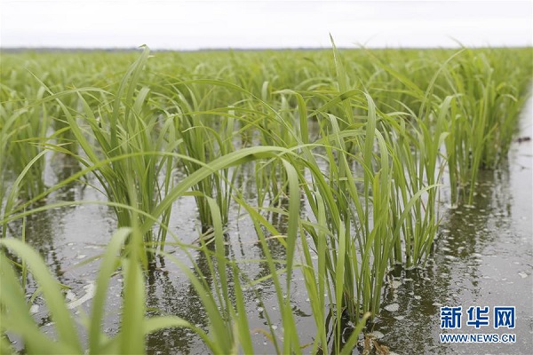 北大荒农垦集团有限公司建三江分公司(管理局)七星农场长势良好的稻田(6月15日摄)。新华社发(张涛 摄)