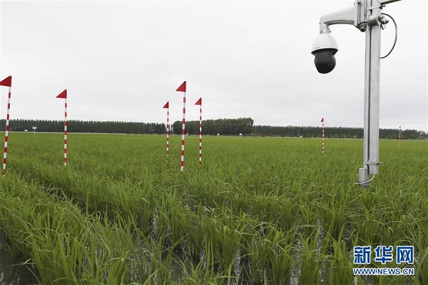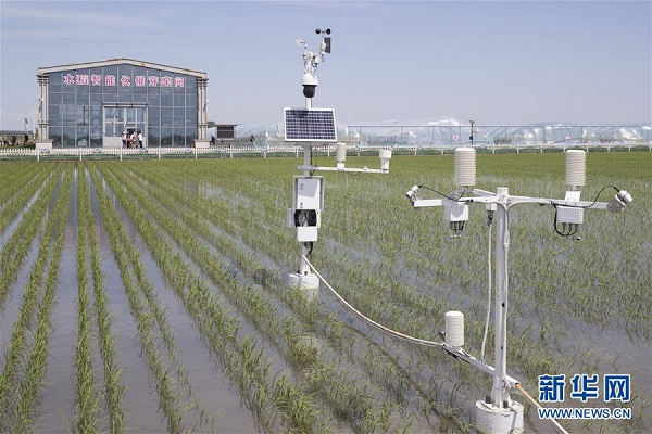 北大荒建三江国家农业科技园区里的监测设备(6月15日摄)。新华社发(张涛 摄)