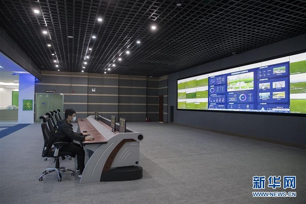 工作人员在北大荒精准农业农机中心的农业物联网综合服务信息化平台上进行操作(6月15日摄)。新华社发(张涛 摄)