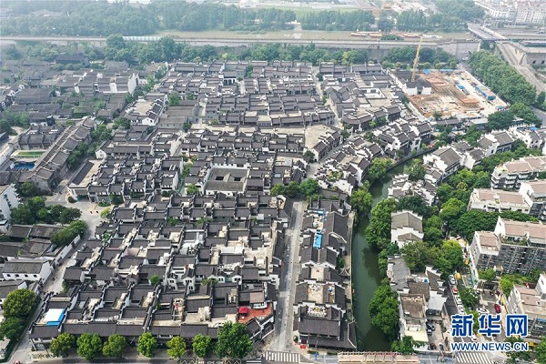 与小西湖片区一街之隔的老门东已改造一新(7月1日摄,无人机照片)。新华社记者 杨磊 摄