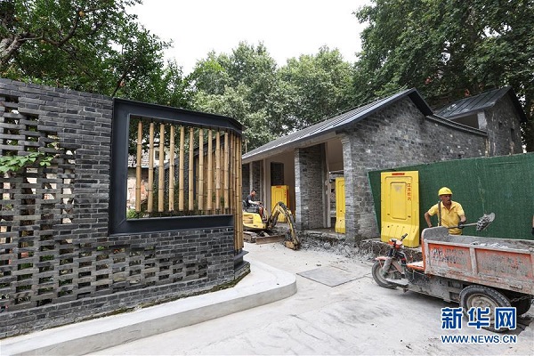 在南京小西湖片区,几名建筑工人在老宅里施工(7月1日摄)。新华社记者 杨磊 摄