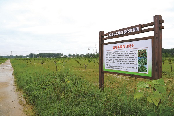 取到了药方,扶贫队和南圩镇的领导一起开始了古云梯关村的农业规划,首先种植一千亩葡萄园、一千二百亩黄金枣、一千亩稻虾混养、一千亩浅水藕、三千亩红皮花生,其中,低收入户以土地入股,入股了八千亩。同时规划建设一百亩高效设施蔬菜种植基地,通过引进新技术、新品种,增加云梯关村蔬菜种植的品种和产量,寻求南京师范大学等科研单位作为技术依托单位,引进最新蔬菜瓜果药材优良品种和先进技术进行推广,成立云梯关村蔬菜合作社,推动标准化生产品牌经营。