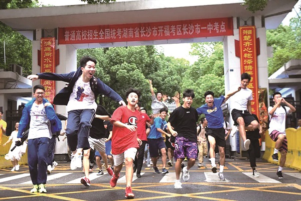 7月8日,考生们在高考结束后跑出湖南省长沙市一中考点。 新华社记者 薛宇舸 摄