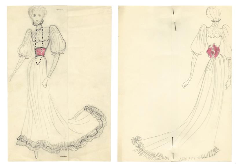 伊夫•圣罗兰这款塔夫绸礼服设计手稿