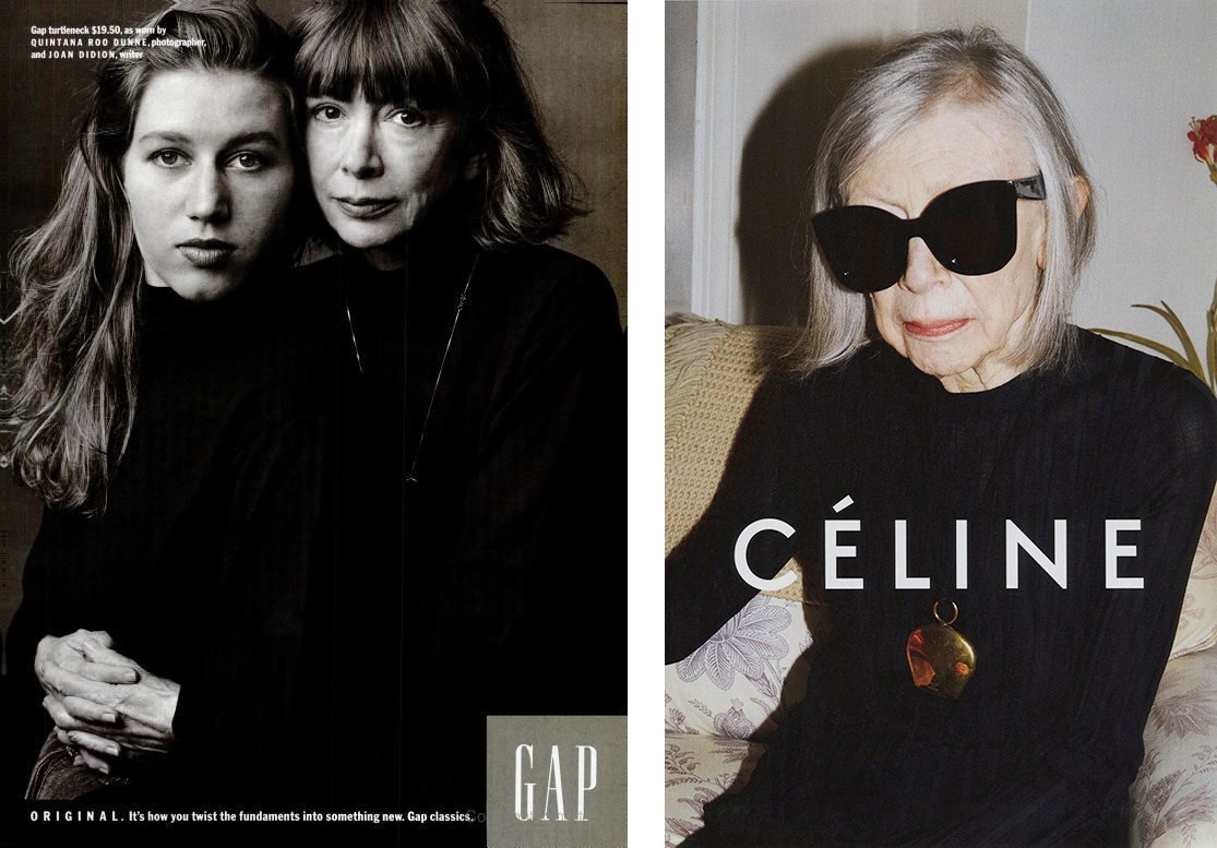其实,狄迪恩与时尚界的关联很早就开始了。21岁时,她在Mademoiselle当客座编辑,后在Vogue从业十年,她的穿衣风格举世称颂。她是Vogue的常客,媒体甚至称她为“Céline女王”,因为她80岁高龄时亲自为Céline代言。