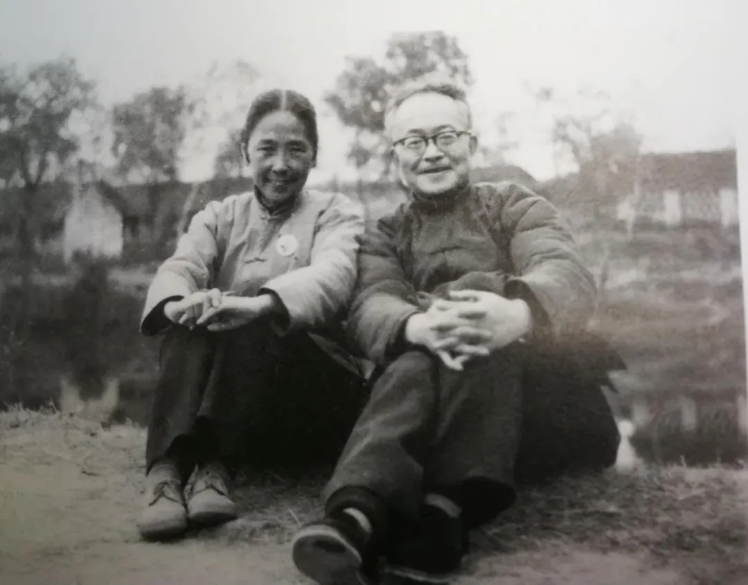 沈从文、张兆和在咸宁干校“452高地”合影(1969年岁末)