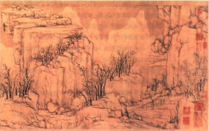 我却对于东路钟粹宫的字画,和另一宫的瓷器陈列特别感到兴趣。为的是可以补充我初来北京,住东琉璃厂附近那半年,每天逛琉璃厂可不易见到的名画法书。至今印象还十分清楚。范宽的《雪山图》,董源的《龙绣郊民图》,夏圭的《溪山清远图》,赵松雪的《秋江叠嶂图》……都深深吸引着我,支配着我,并产生种种幻想和梦境,丰富充实了我这方面的知识和感情,甚至于也影响到后来的写作,用笔时对于山山水水的遣词措意,分行布局,着墨轻重,远过直接从文学上得到的启发还加倍多。[16]