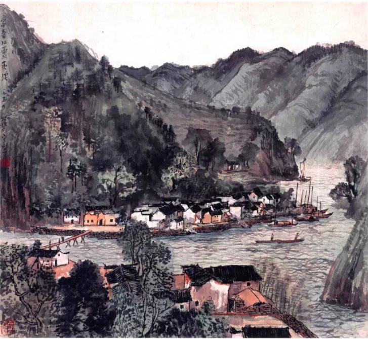 “小说似这个也是那个”,显示出沈从文作品中绘画世界和文字世界近于浑然一体的倾向;从深刻影响他写作的北宋廿四种水势图以及《临流独坐图》《溪山清远图》《长江万里图》《巴船出峡图》《雪江归棹图》《江行初雪图》等画作中[20],则可以摸索他是以怎样的心情,在沱江清流、沅水两岸、边城小渡的水波痕迹里构思人事风云和作品意境的。这种“据图构思”的写作方式,被他称为“凡百人事总于一个不同季候不同景物背景中发生存在”,从而构成“戏剧和图画的本事”[21]。所谓“图画的本事”,即来源于四时风景中的人事命运,其与“戏剧”并置,恰说明了沈从文也从绘画的空间结构里挖掘并布置他所需要再现的“叙事性”。